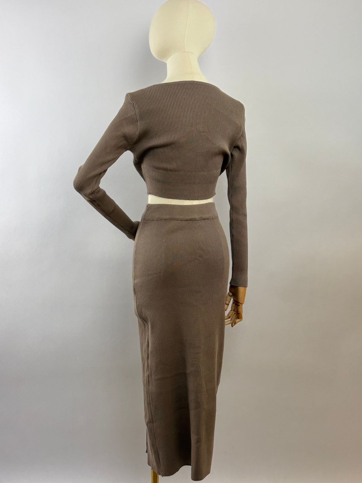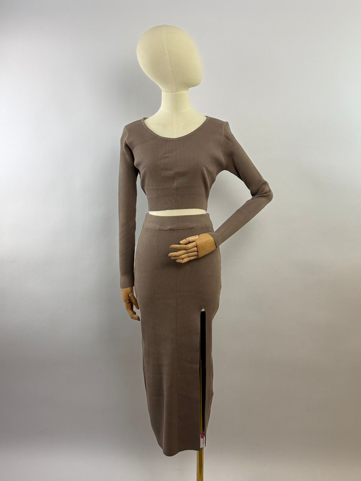 CONJUNTO HERMOSO DE DOS PIEZAS DE FALDA LARGA CON ABERTURA EN LA PIERNA