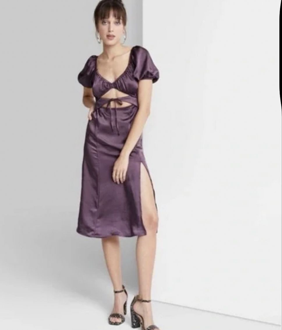 HERMOSO VESTIDO MORADO DE SATIN FRESCO