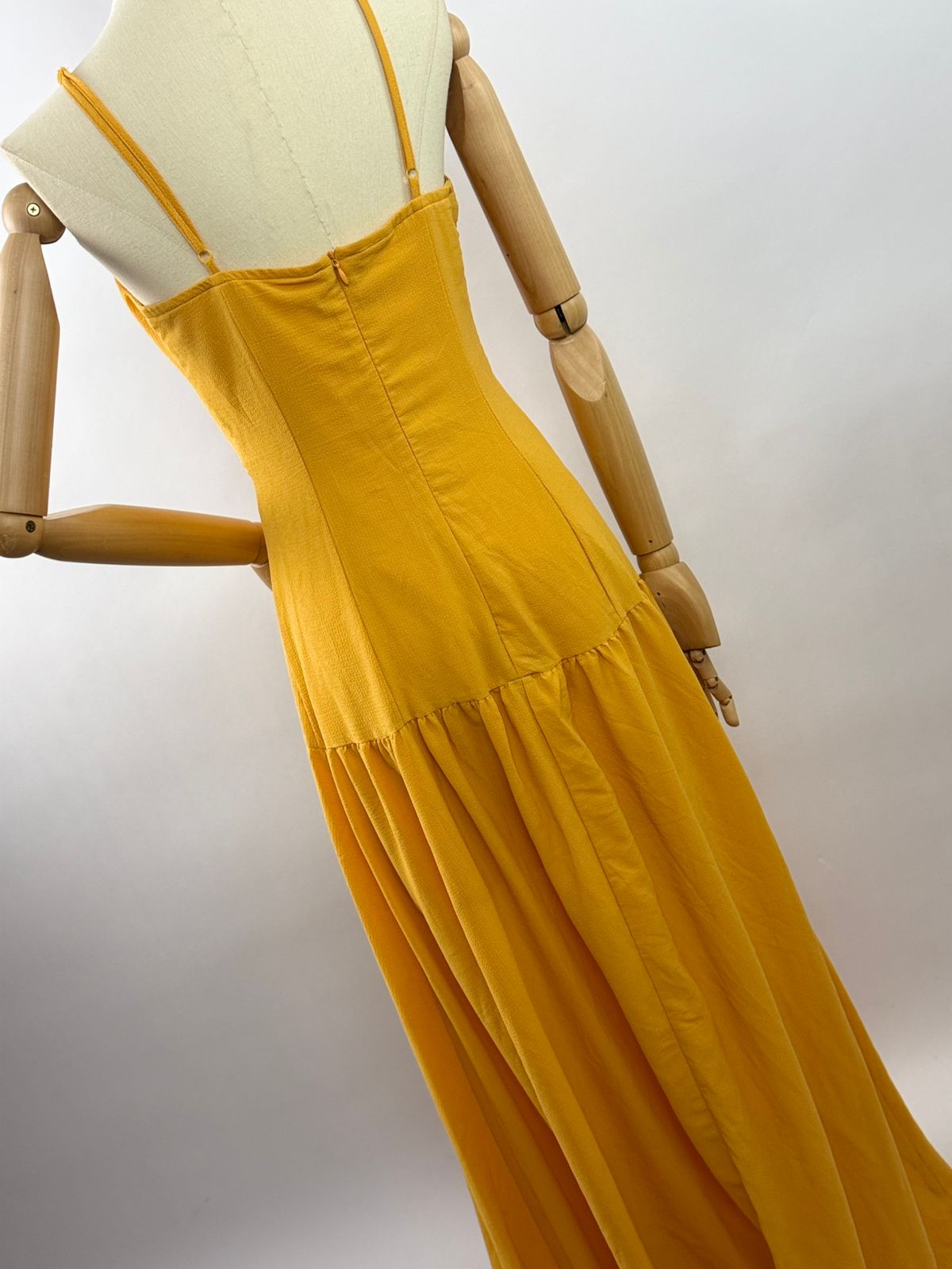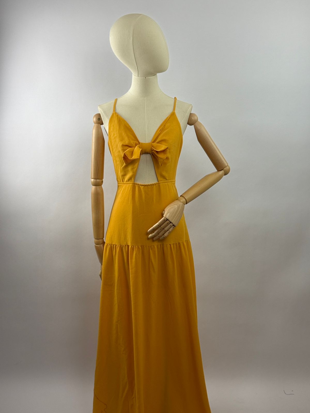 VESTIDO IDEAL PARA EL VERANO EN TONO AMARILLO CON MOÑO AL FRENTE