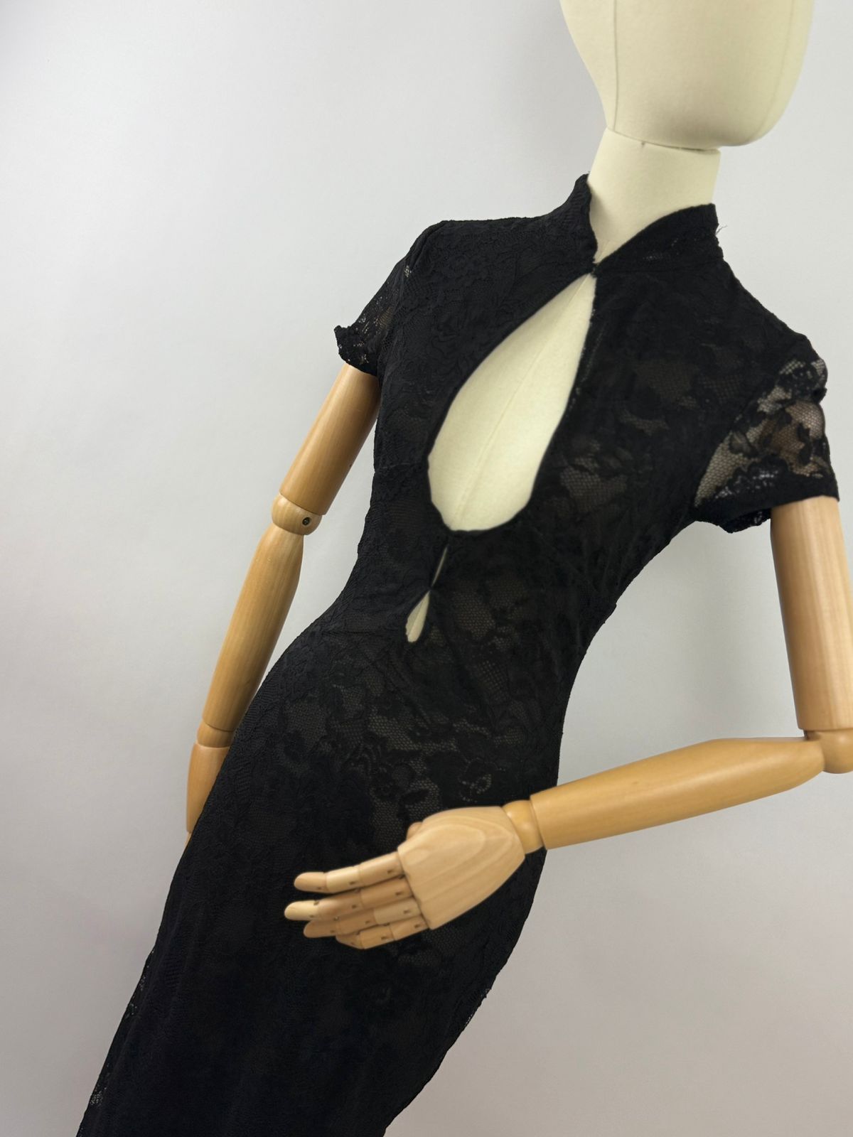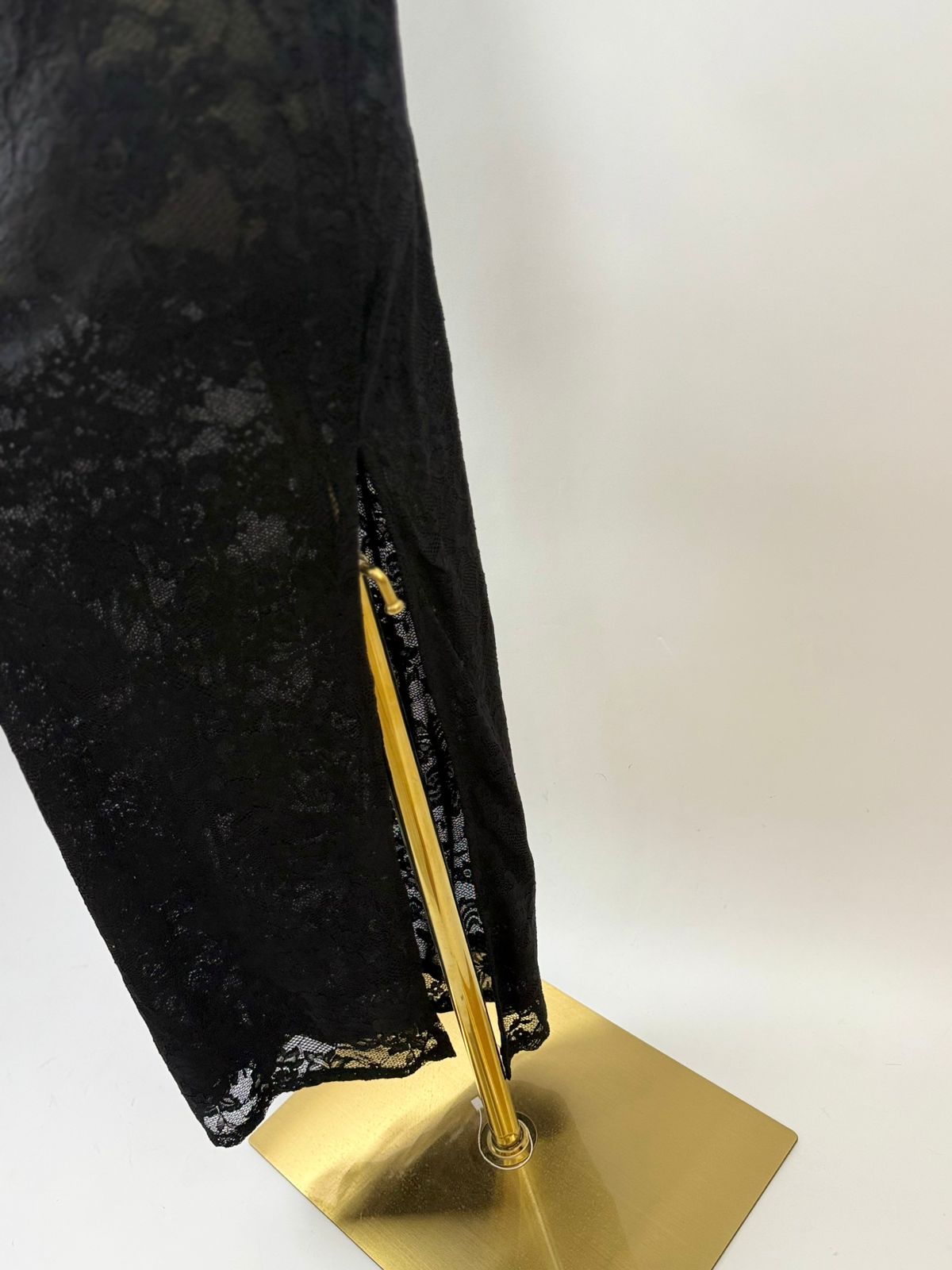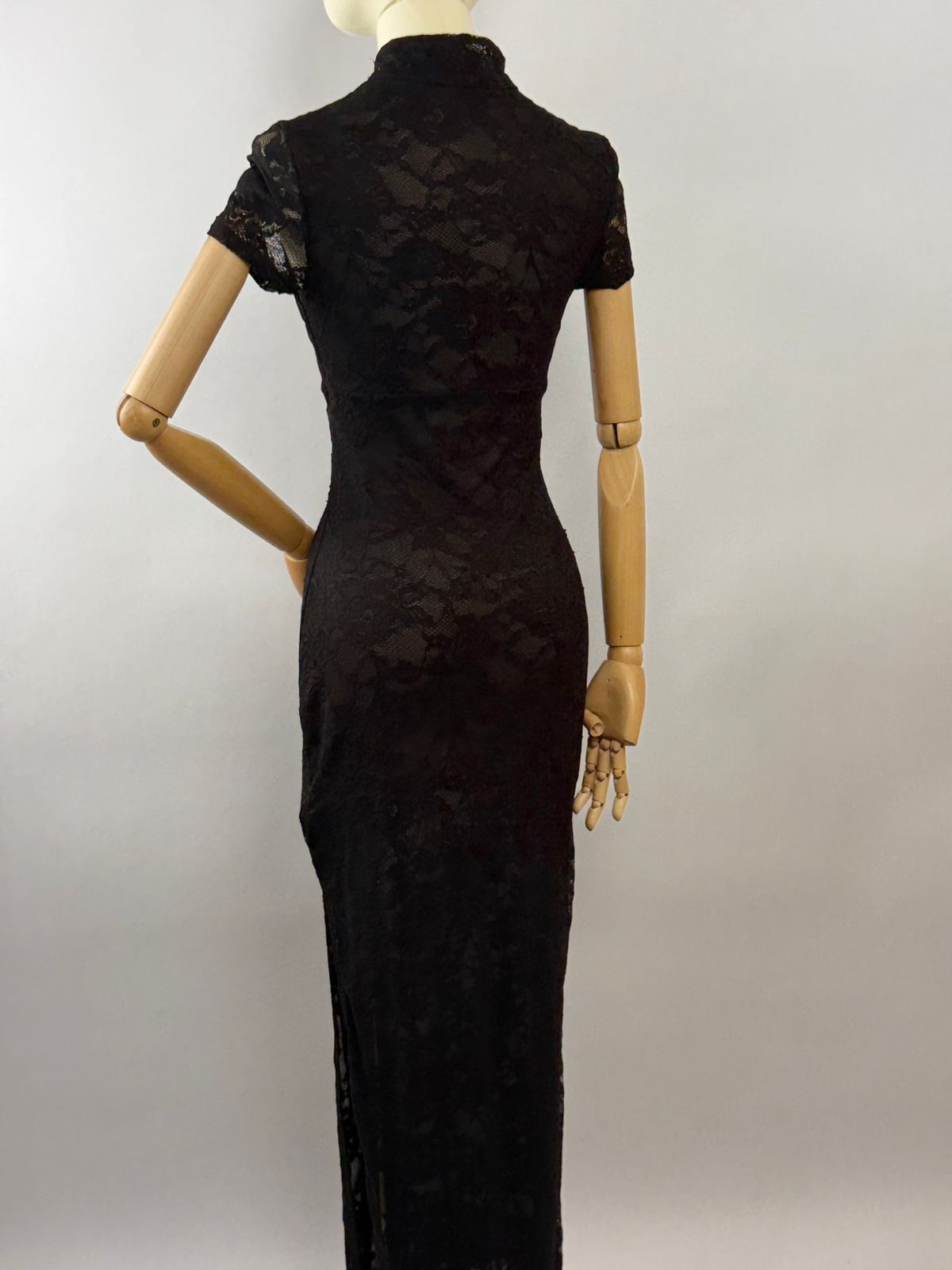 HERMOSO VESTIDO LARGO DE ENCAJE CON PIERNA DESCUBIERTA